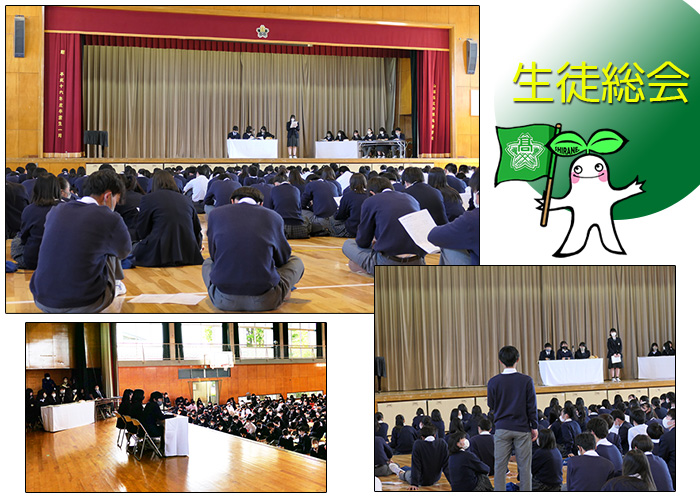 今年度の第1回生徒総会では、生徒会行事計画、予算案、白根祭について話し合いが行われました。