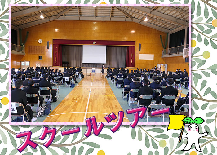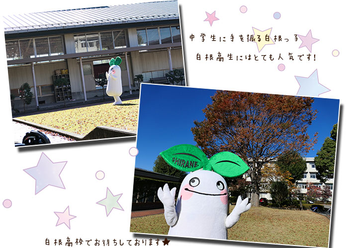 山梨県立白根高等学校 > 学校生活 > スクールツアー 2021年11月13日カテゴリー: 学校生活 スクールツアー 本日(11月13日土曜日)は中学生を対象としたスクールツアーが行われました。 今年度は学校説明会やオープンスクールが中止になってしまったので、中学生にとって初めて本校に来て様子を知ることができたと思います。 校長先生、生徒会長のあいさつと、学校紹介ビデオの上映、教務係の先生から定員や入試などの話がありました。 生徒会役員の生徒たちが、校内施設を案内しました。 施設案内の後は、自由に部活動見学を行いました。 サッカー部は練習試合をしていました。野球部には大勢の見学者が訪れていてマネージャーがとてもかわいい笑顔で「たくさん来てくれて嬉しいです!」と喜んでいました。 本校のスクールマスコットも登場! 白根高生だけでなく、中学生にも人気でした。 参加いただきました約120名の中学生の皆さん、ありがとうございました。 是非、進路選択のひとつとして白根高校をご検討ください!