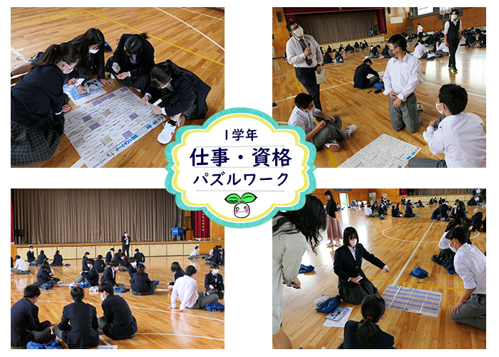 本日(4月27日)の午後、1学年ではキャリア教育ワークショップとして「仕事・資格パズルワーク」を行いました。