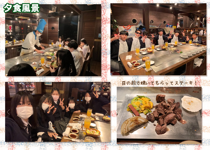 夕食は鉄板焼き&ステーキをみんなで食べました。