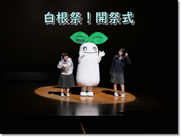 開祭宣言の為、白根っこ登場!スポットライトを一身に浴び、生き生きとしています!