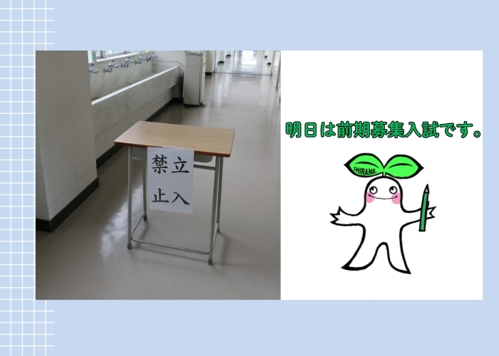 明日(1月29日)は、高校入試の前期募集検査が行われます。