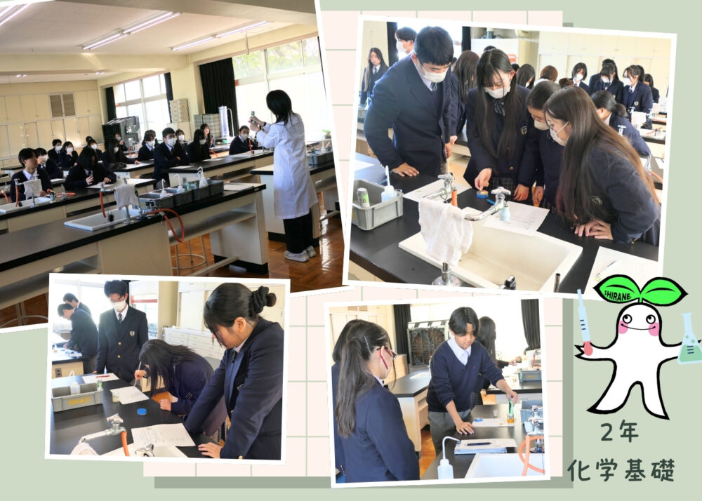 2年生の化学基礎の授業では、pHの測定実験を行い、変化を観察していました。