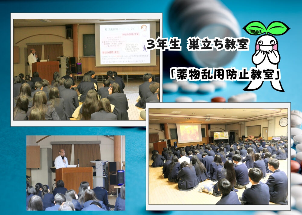 山梨県立白根高等学校 > 学校生活 > 3年生巣立ち教室「薬物乱用防止教室」 2026年2月26日カテゴリー: 学校生活 3年生巣立ち教室「薬物乱用防止教室」 昨日(2月25日)は、3年生の登校日でした。 今回の巣立ち教室では、本校で長年お世話になっている学校薬剤師の先生に「薬物乱用防止教室」を行っていただきました。 先生からは、薬物の恐ろしさや、売買の手口がどのように近づいてくるのかといった具体的なお話があり、改めて自分自身を守ることの大切さを学ぶ時間となりました。 どんな誘いがあっても流されず、自分で「NO」と言える強さを持ってください。 そして、自分の未来と健康をしっかり守っていきましょう。
