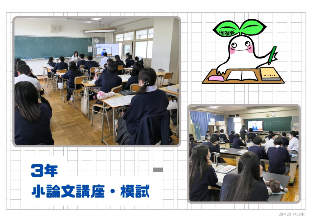 先生からお話があったことをよく頭に入れて、夏に向けてのインターンシップの準備をしていきましょう!3年生では、毎年お世話になっている、第一学習社の川脇先生に小論文講座をうけました。